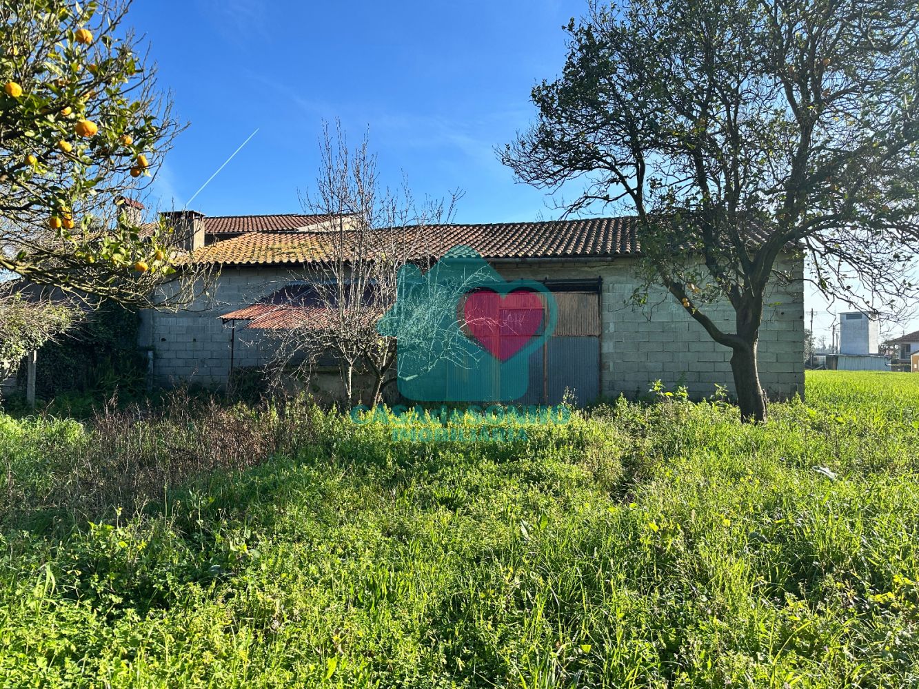Com um pequeno jardim na frente, garagem e estacionamento coberto, telheiro, cozinha de forno, lagar, arrumos, currais, anexo preparado para cozinha e 1 quarto, poço, pátio e um enorme terreno nas traseiras, com acesso a caminho de passagem para trator/carro.
